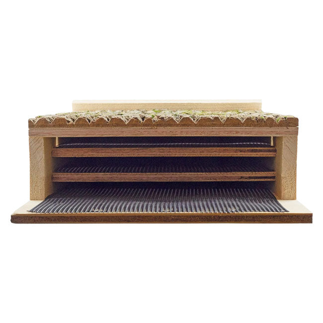 - Vertical dividers are covered in black, mesh netting, for bats to climb upward and roost inside each 0.75" deep chamber