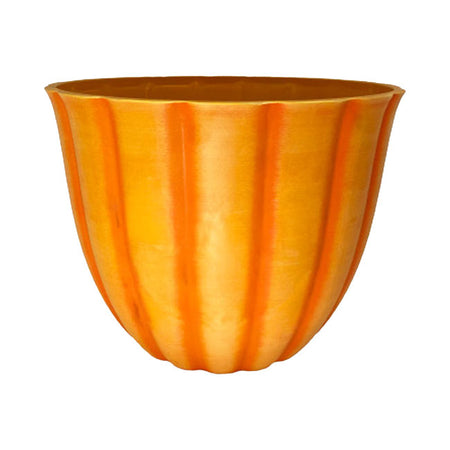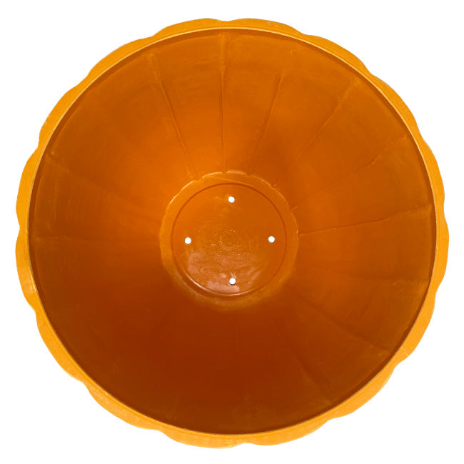 Embellish your fall harvest with a frightful personality using the Urban Gardener Jack-O-Lantern Fiber Clay Pot. Striking and mischievous in appearance, this planter's 6" base generously accommodates your plants while providing a dash of Halloween whimsy to your yard. Vertical, deep orange grooves lend texture to this bright, flashy planter, while its nefarious, black smile provides spooky fun to your yard. Crack-resistant and lightweight, this unit will hold up over repeated outdoor use, and the four small holes at the planter's base ensure healthy drainage. Display outside of Halloween by simply turning the pot around, for a fitting seasonal showcase. This pot's biodegradable, wood-based composition also makes it an environmentally friendly choice for your yard, as it may be composted after use. Celebrate the harvest season with the fabulous, ghoulish Jack-O-Lantern Fiber Clay Pot.
