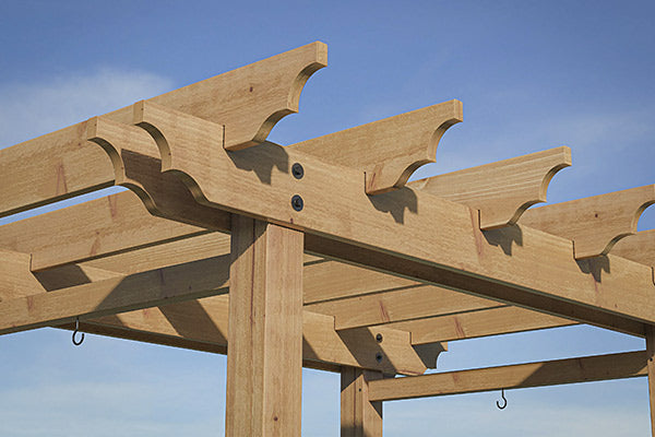 Easily span your walkway and showcase hanging accents using this Vita Gardens Brown Springwood Cedar Arbor. This substantial, rectangular arbor is a perfect addition to your backyard or outdoor sanctuary, transforming a sidewalk or edge into a remarkable passageway. Lengthy, horizontal rafters and intersecting slats create the flat roof of this piece, while the 4" square legs offer plenty of support. Pointed and curved ends on each beam and rafter add a bit of elegance, and their cedar construction furthers the natural appeal. A rectangular lattice panel rests on the bottom half of each side, enhancing the top shape and classic arbor effect. This 35" tall section leaves a significant part of the panels open, allowing you to view and survey your property with ease. For added interest and color, install the included eyehooks onto the beams here, and hang a flower basket, small spinner, or wind chimes. Crafted from sustainably sourced, FSC cedar, the arbor naturally repels both insects and decay, and the visible grain and varied tan hues make each piece unique, for a one-of-a-kind garden addition. Included mounting pipes insert into each hollow leg, acting as anchors once installed in soil, for a hardy and lasting display. The brown finish is sure to offset your hanging accent, and perfectly enhances the cedar body, while the impressive size makes a grand statement. Create an observation spot and focal point in your backyard with this Brown Springwood Cedar Arbor. Assembly required. One year warranty.