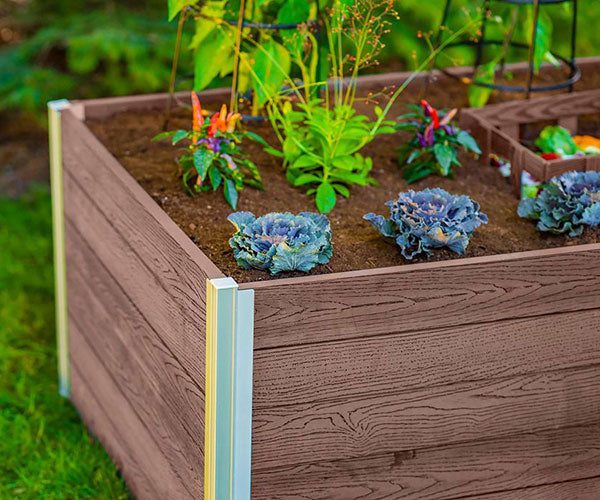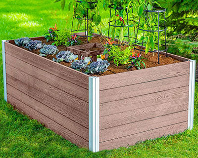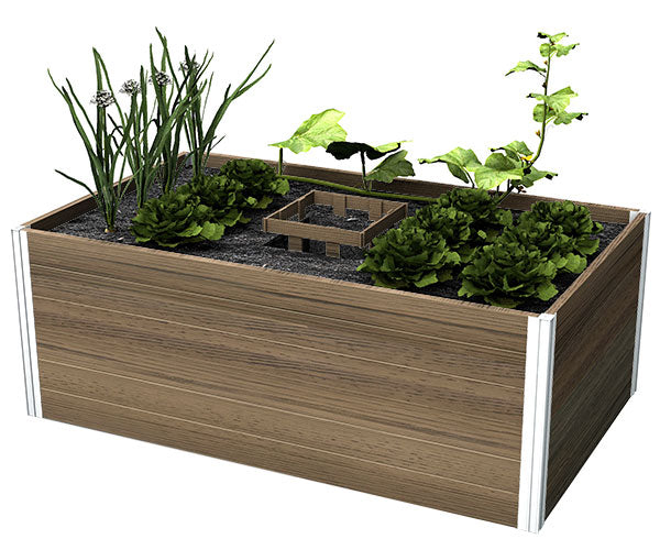 Create a fantastic growing and composting area in your yard using this Vita Gardens Espresso Urbana Composting Garden Bed. The durable materials, thoughtful design, and significant footprint of this item form a lasting garden plot, perfect for growing in areas that are drought prone or have poor soil. Its classic, rectangular frame holds a wealth of potting media, and a square column sits in the center of the piece. Fill this basket with compostable materials, such as twigs, leaves, and grass clippings, and top it with some soil. As these materials decompose, they transform into nutrient rich compost, feeding the roots of your plants for healthy crops. Watering through this basket allows more nutrients to reach the root systems, and can also significantly reduce your water use. The BPA and phthalate free, food safe, polymer frame assembles easily and requires no tools, and its brown hue adds a traditional color scheme to any setting. One side of these slats has a smooth, brushed finish, while the other sports a faux wood grain for even more versatility. These sides slide easily into the included, aluminum supports, and the polymer construction remains beautiful with little maintenance. Its 3' wide and 5' long body enables you to reach into the unit for straightforward harvesting, and the 22.25" overall height reduces strain on the knees and back. Keep your vegetable crops well-fed and add to your gardening prowess with help from this Espresso Urbana Composting Garden Bed. Assembly required. Ten year warranty.