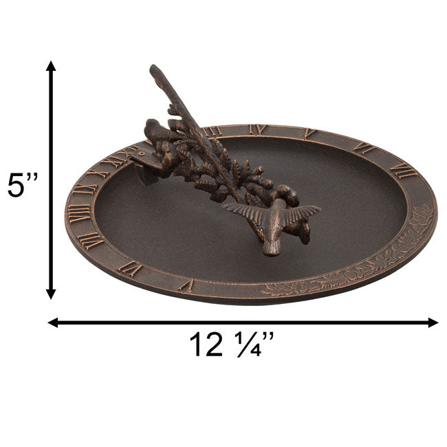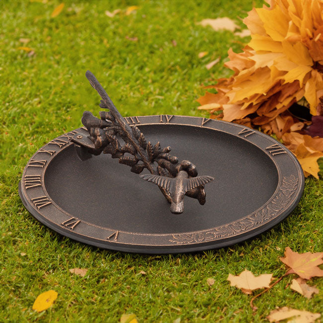 Whitehall Aluminum Hummingbird Sundial Bird Bath, Rub Bronze