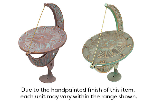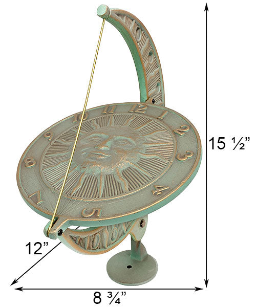 Whitehall Aluminum Sun and Moon Sundial, Copper Verdi, 12"L