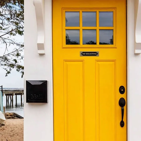 - Neatly displayed "No Soliciting" message clearly averts unwanted visits from your property