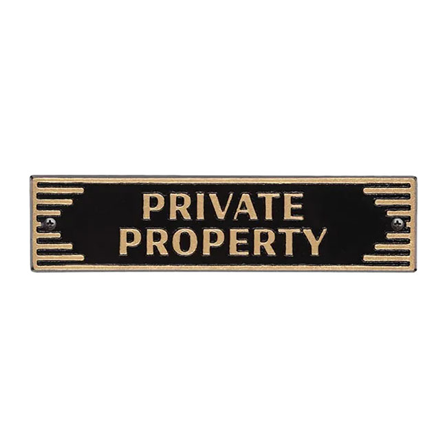 Add a bold addition to your door or residential area with this sleek and eye-catching Whitehall Private Property Door Art Deco Plaque.