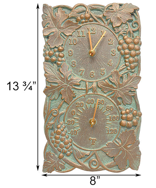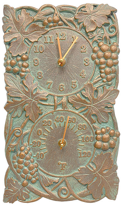 Whitehall Grapevine Clock and Thermometer, Copper Verdigris