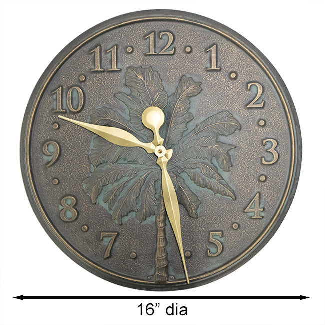 Whitehall Palm Tree Clock, Bronze Verdi, 16" dia.