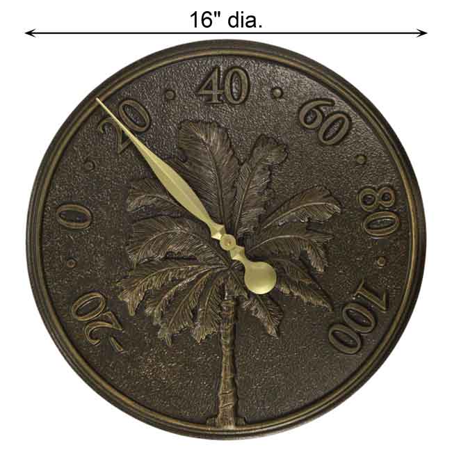 Whitehall Palm Tree Thermometer, French Bronze, 16" dia.