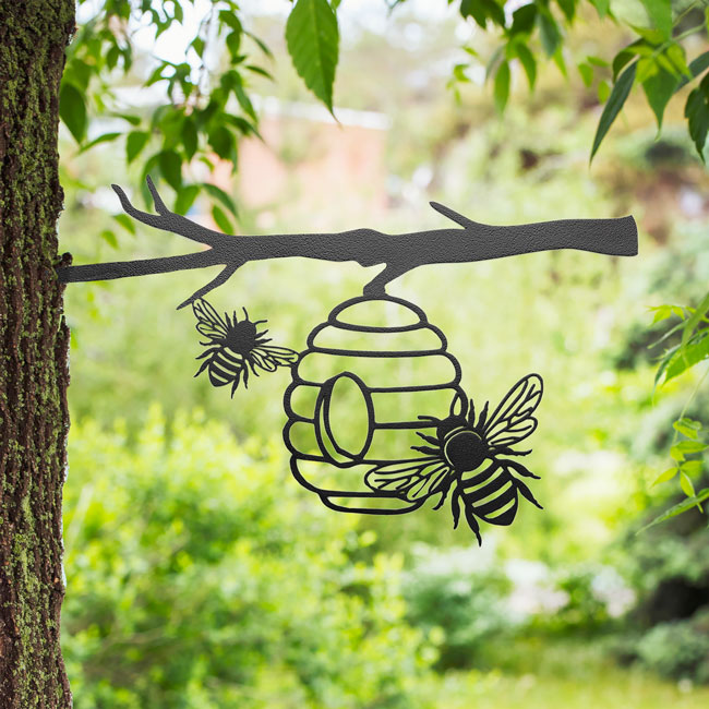 - Loving depiction of a friendly beehive adds whimsy and charm to your landscape