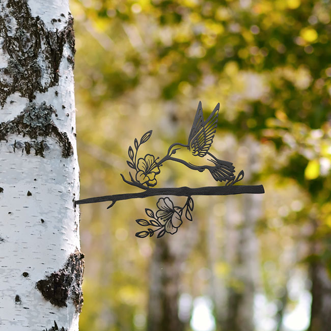 Pay homage to some of your favorite, familiar wildlife scenery in low-profile and subtle style with this Whitehall Hummingbird Tree Spike Silhouette.