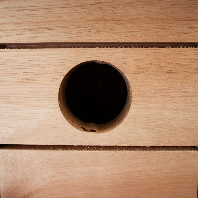 - 1.5625" diameter entry hole here allows both eastern and western bluebirds to use the nest box.