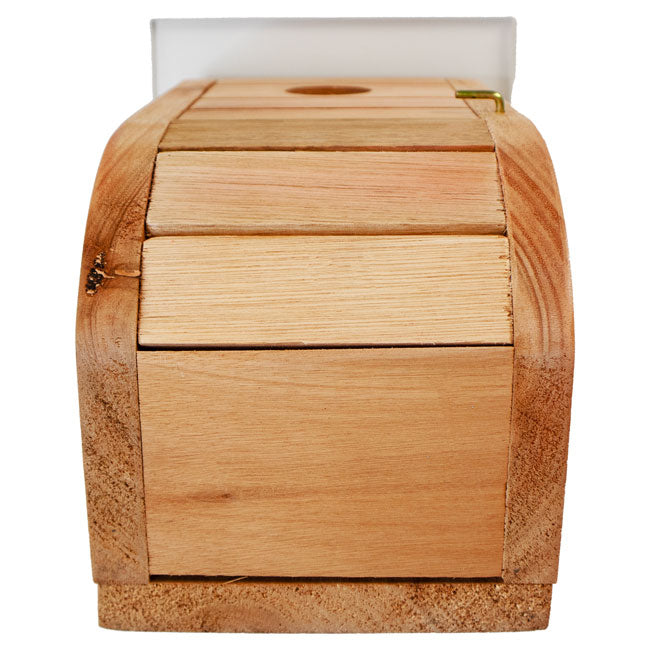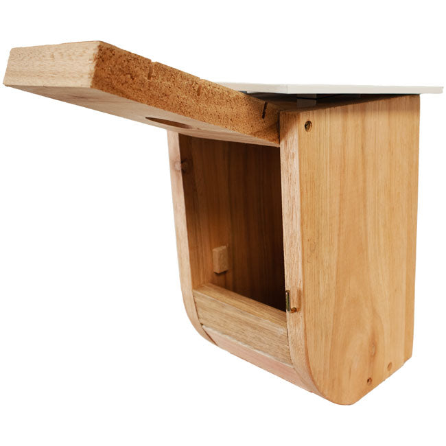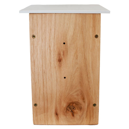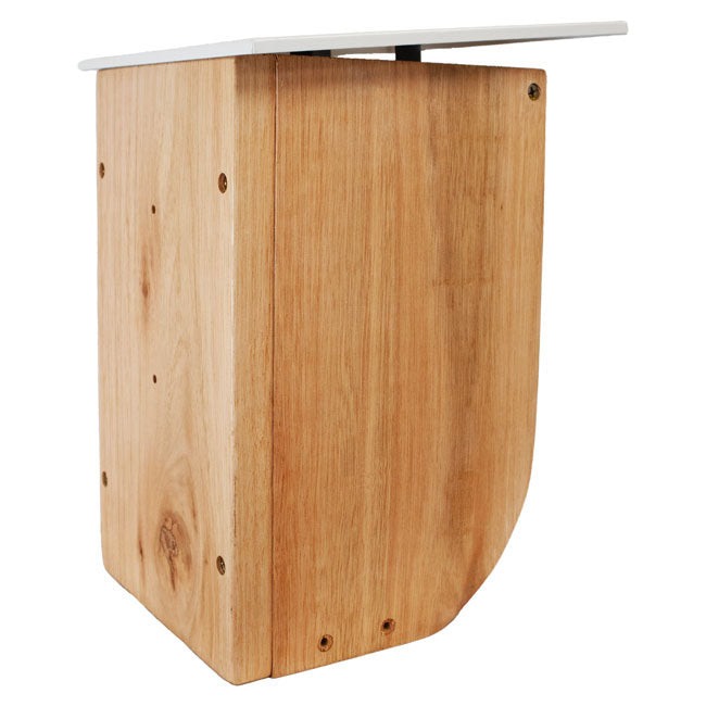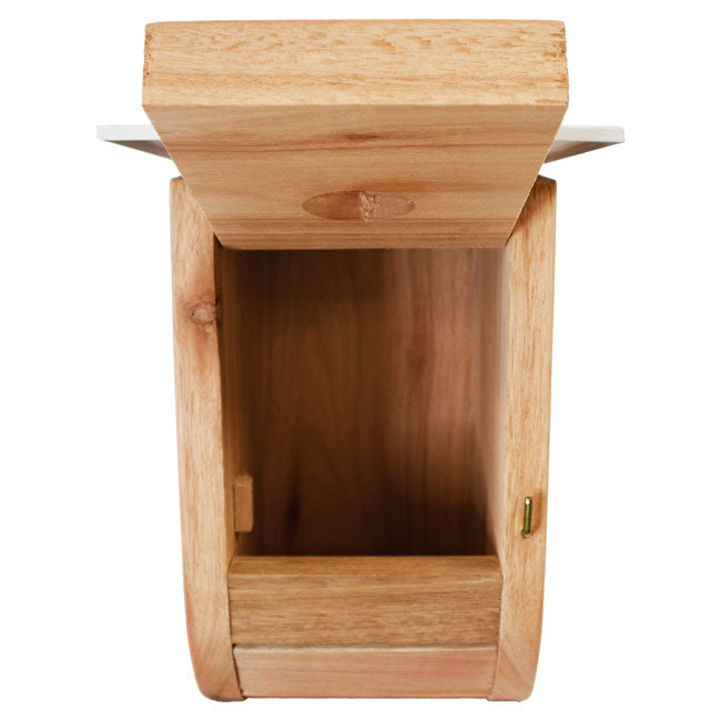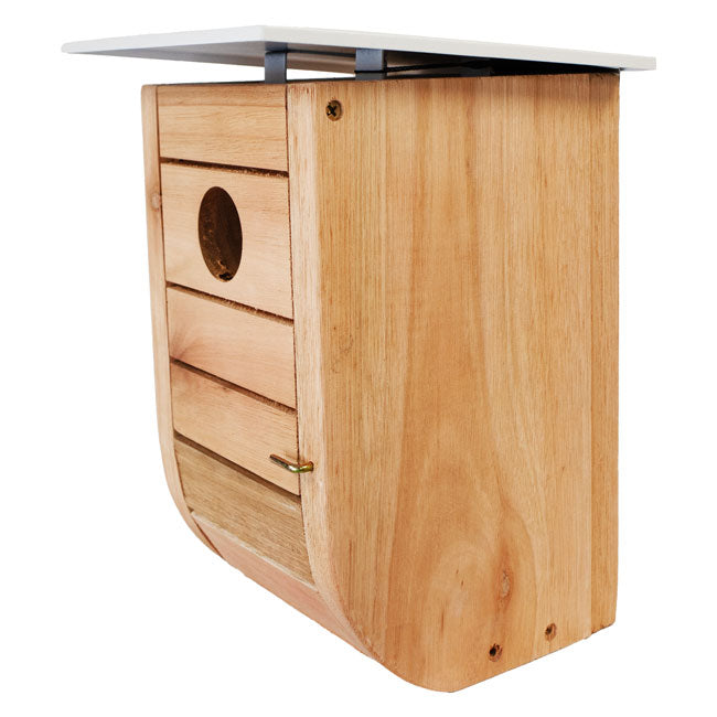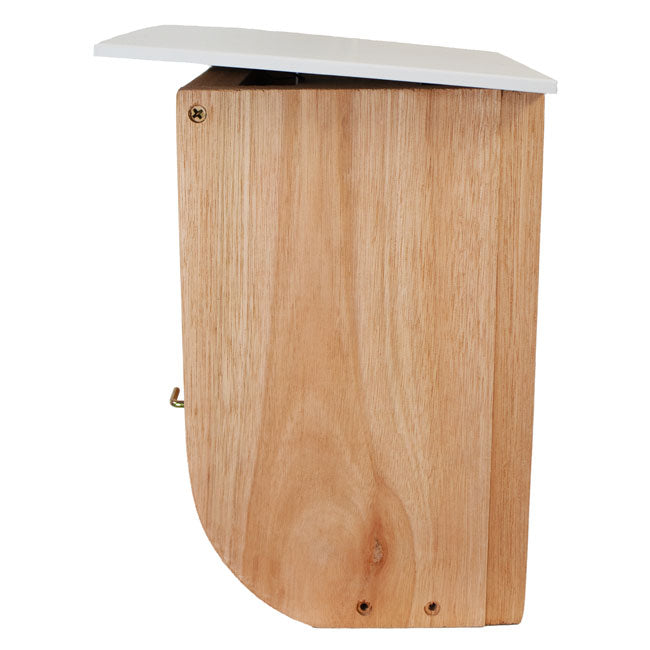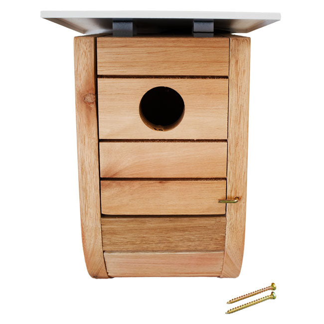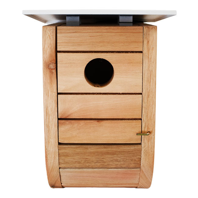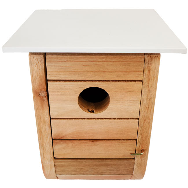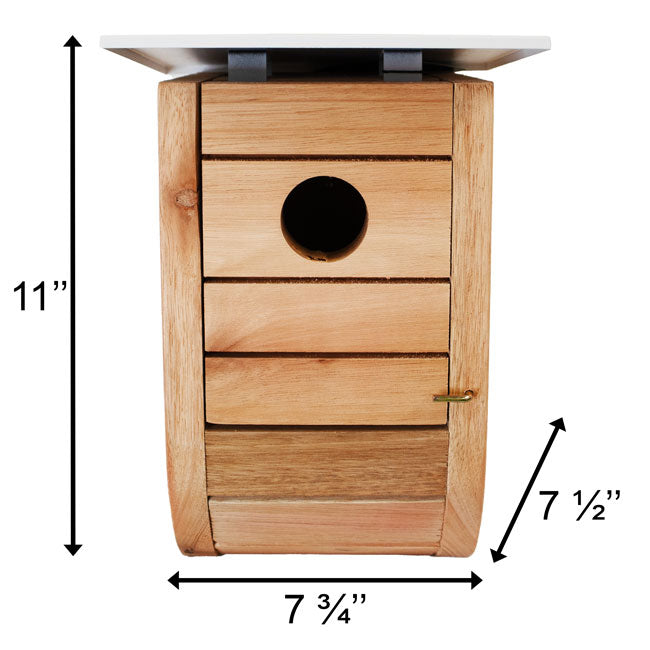 - Classic, wooden bluebird house sports a curved base and generous metal roof for a contemporary look.