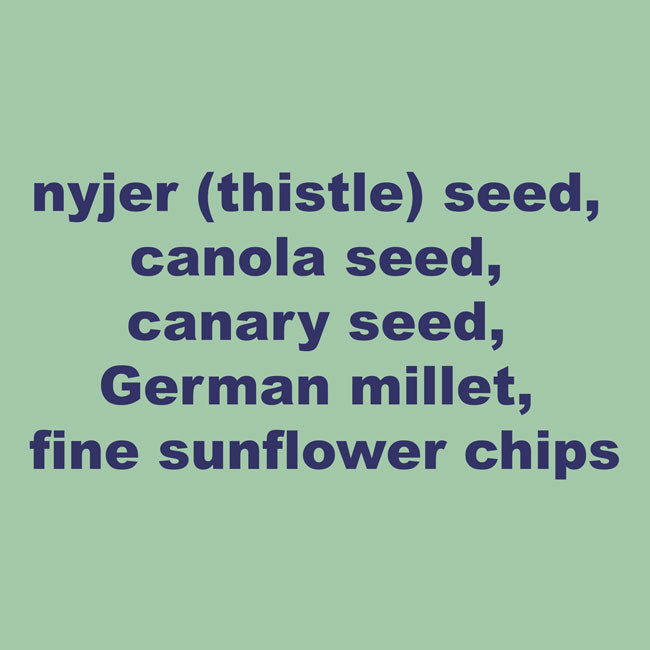 Ingredients: nyjer (thistle) seed, canola seed, canary seed, German millet, fine sunflower chips