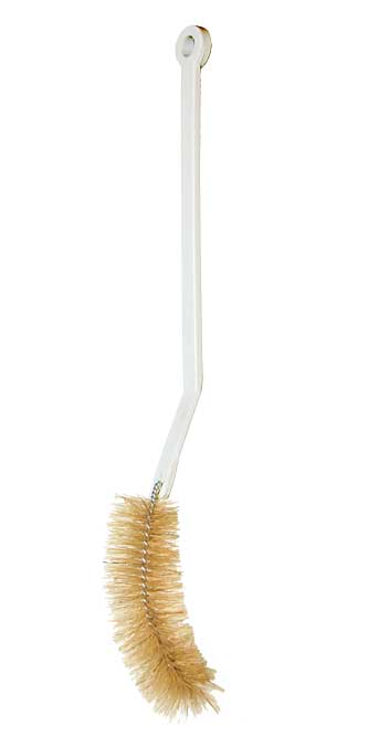Keep your bird feeder bases and reservoirs clean easily using this Wildlife Accessories Handy Brush. The curved shape and hardy materials on this piece create a unique and lasting brush, perfect for use with a wealth of bird feeders. The arched brush head reaches into the edges of your round, saucer style feeders with ease, while its robust bristles scrub away debris. The head also fits into the neck of hummingbird feeder bottles, and the extended, plastic handle is great for bottles up to 10" tall. Help your bird feeders remain healthy and clean with this Handy Brush. Made in the USA.