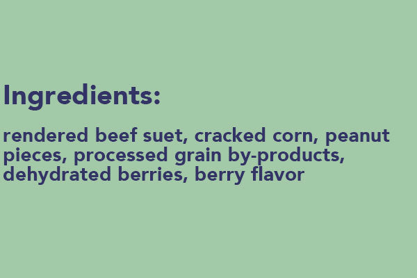 Help select songbirds thrive by placing these Wildlife Sciences Fruit and Nut Suet Balls in your yard. These formed spheres bring a bold element to your bird garden, while the rendered beef fat base offers energy and nutrients to songbirds. Peanut pieces, dehydrated berries, and cracked corn within each orb adds extra flavor and vitamins for your feathered friends, and placing the units on platform or tray feeders allows many birds to dine. Use these in a specific suet ball feeder for more selective feeding. Invite birds to fly around your garden and dine using these Fruit and Nut Suet Balls. Made in the USA.