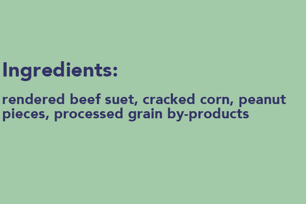 Add two of wild birds' favorite foods to your backyard at once with these Wildlife Sciences Peanut Blend Suet Balls. This formed mixture of rendered beef fat, peanut pieces, and cracked corn can certainly entice a wealth of birds to feed in your garden, while allowing you to offer peanuts in a tidy way. Each orb may be placed in your existing suet ball feeder (not included), or can be added to a platform for more birds to enjoy it. This feed helps birds maintain their high energy levels, and is particularly great for use in cold months, when insects or other food options are scarce. Invite a wealth of birds to dine on their favorite snacks with these Peanut Blend Suet Balls. Made in the USA.