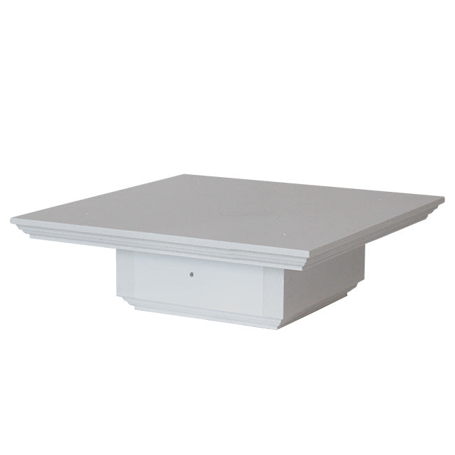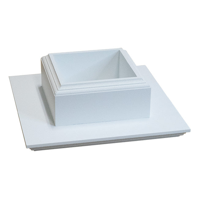 Easily display a bird house or feeder atop a true, 4" x 4" vinyl post using this Wing and A Prayer Universal Adapter. This hardy, PVC bracket provides a generous top platform, easily accommodating a large bird feeder or house. A neck beneath this plate slides over decorative PVC or vinyl, 4" square posts, and a stepped base adds wonderful style. This also echoes the stepped detailing beneath the 9.25", square plate, and the white color of the unit offers a classic look. A predrilled hole in each corner of the top plate make it simple to mount it to the base of a larger item, and another hole on the sleeve keeps the adapter secure. The piece may also be used on dimensional, wooden 4 x 4 posts, although gaps may appear and it may be necessary to shim it. The hardy, PVC lumber construction will not rot or mold, for a lasting garden accessory. Showcase a bird house easily with this Universal Adapter. Made in the USA.