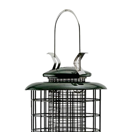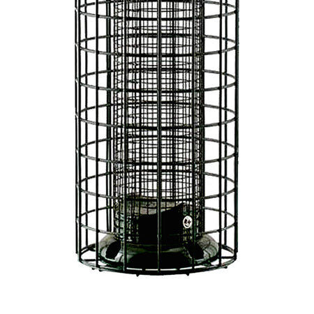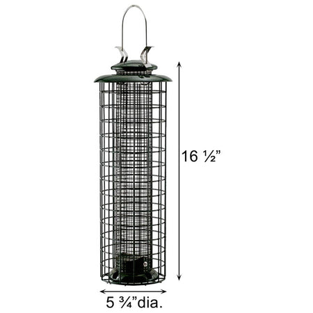 - A larger cage surrounds these seed tubes, its 1" square openings allowing birds to reach the feed