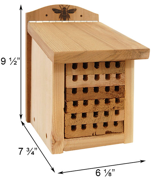 - Horn faced, orchard, and mason bees often lay eggs in the holes of wooden structures, and these cedar units meet those needs