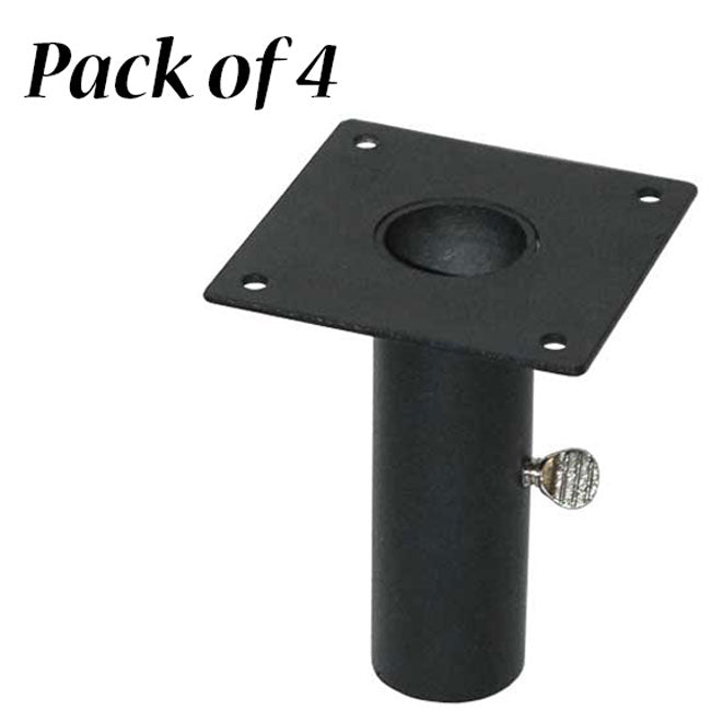 - Each top, steel plate affixes to items with a 4" square or larger, level base