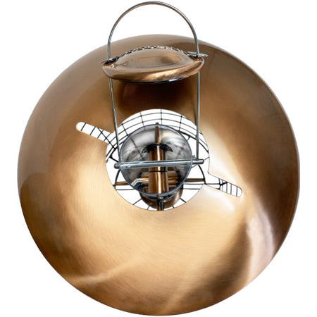 The Woodlink Squirrel-Resistant Brushed Copper Seed Tube Bird Feeder has a great design which hinders squirrels from feeding while providing a safe haven for small songbirds. The 1.5" fencing creates perching for a bevy of small songbirds while discouraging squirrels and larger birds from intruding on the feeding. The feeder tube is made of durable polycarbonate plastic that is perfect for accommodating 1 quart of sunflower seed or mixed seed, and the six reinforced feeder ports each have individual perches for convenient access. The flow-through base prevents seed from collecting, so that squirrels are not enticed to cling and feed. The large metal roof and cap help to prevent squirrel damage and serve to keep seed dry and fresh, with dual discs helping keep the lid fixed while the ingenious lock keeps squirrels from lifting the cap. The brushed copper finish adds simple elegance to the piece, and the center tube removes from the cage for thorough cleaning. This feeder may be hung using the included 4.5" metal hanger. Help birds dine without squirrels using this Squirrel-Resistant Brushed Copper Seed Tube Bird Feeder.